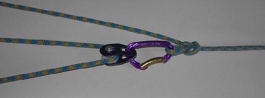 Der Schleifknoten beim Einsatz des Flaschenzuges.